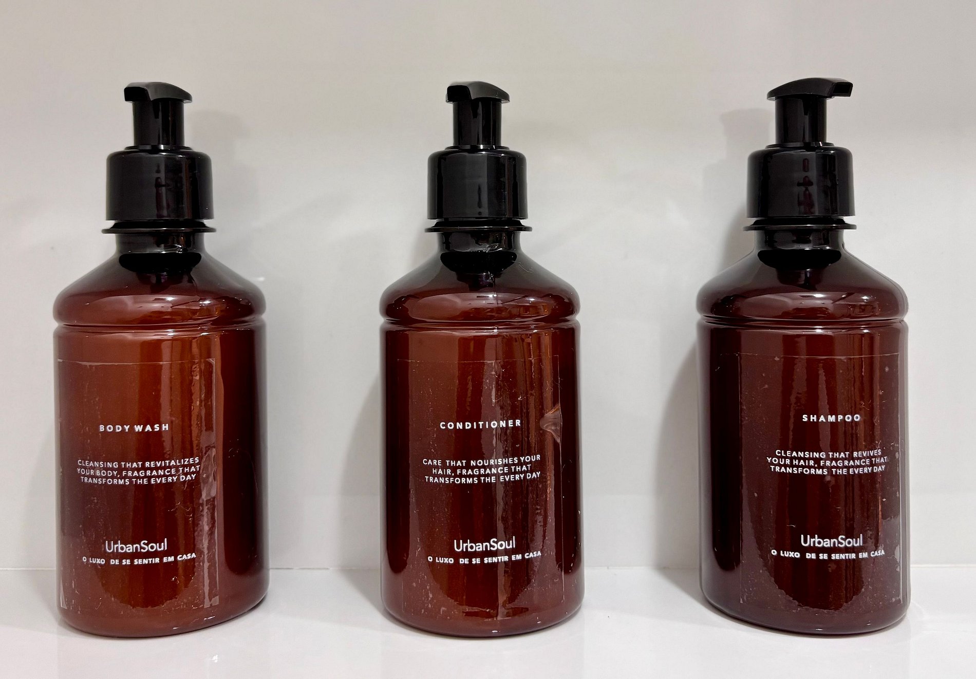 - Produtos de Higiene de Luxo: Shampoo, condicionador, sabonete líquido para corpo e mãos e creme de alta qualidade para o seu bem-estar.