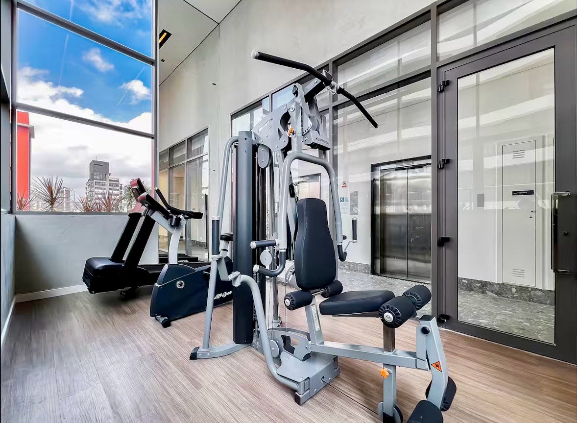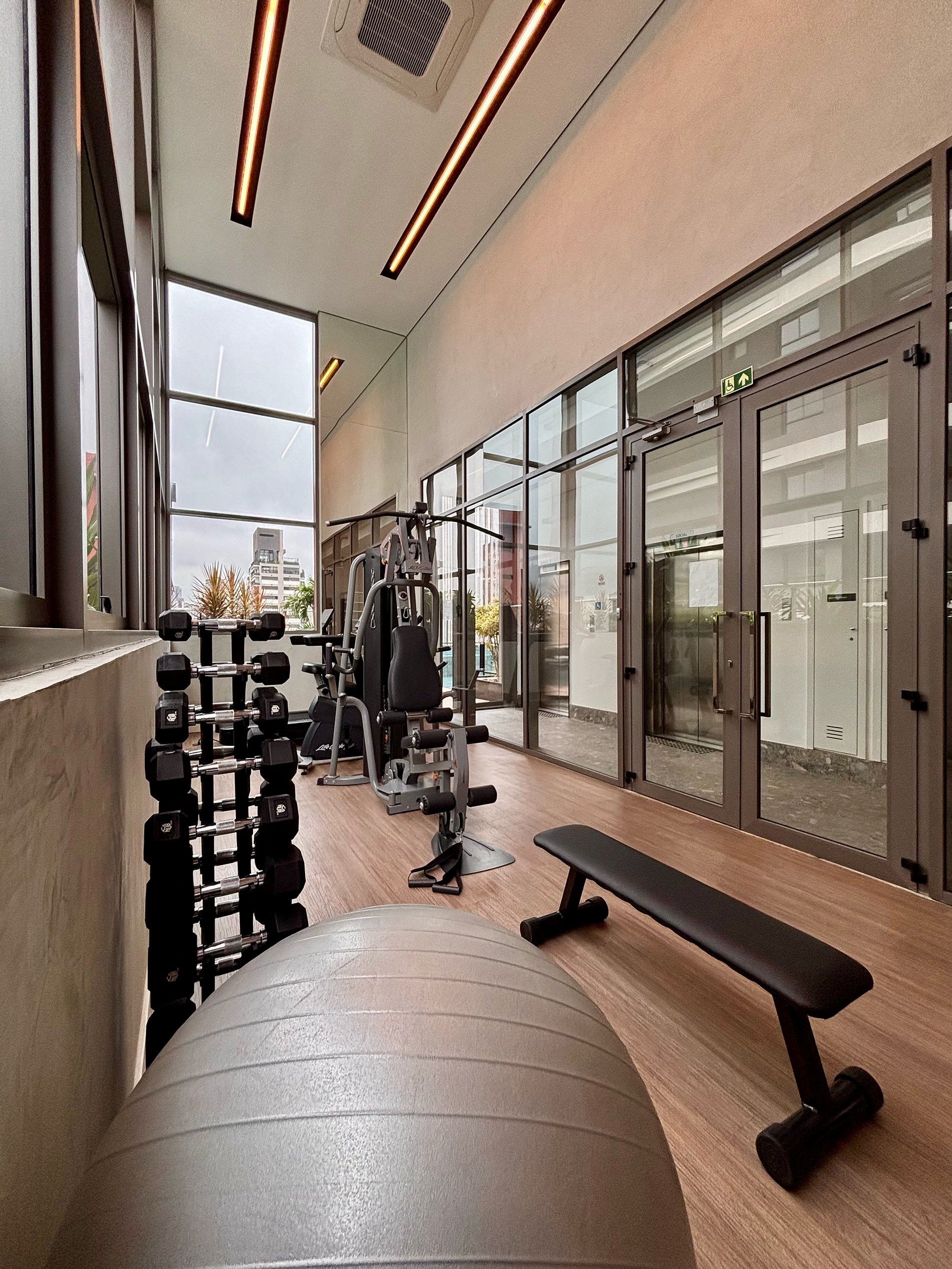 Piscina, academia e jardim