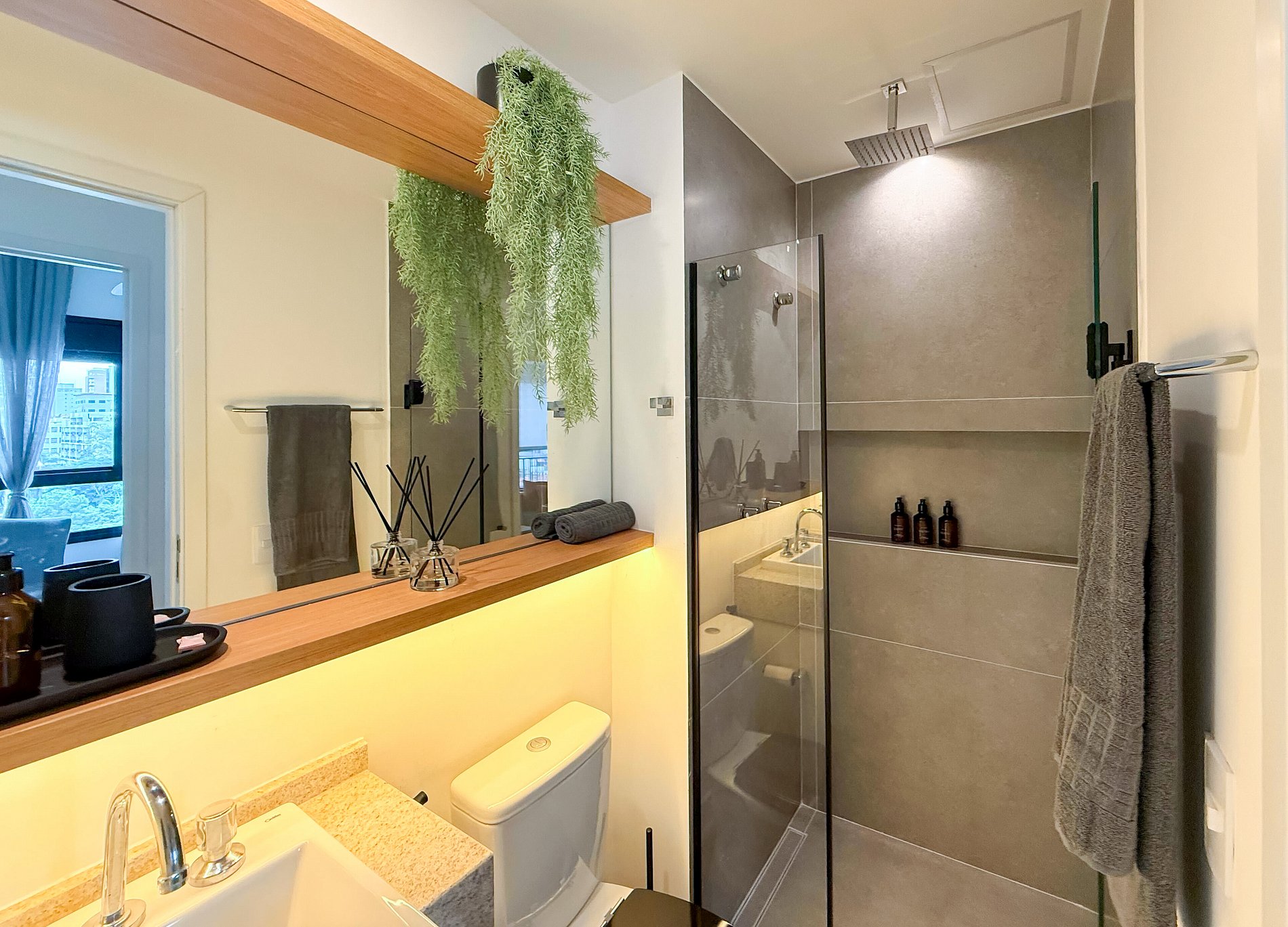 • Chuveiro com aquecimento a gás e excelente pressão