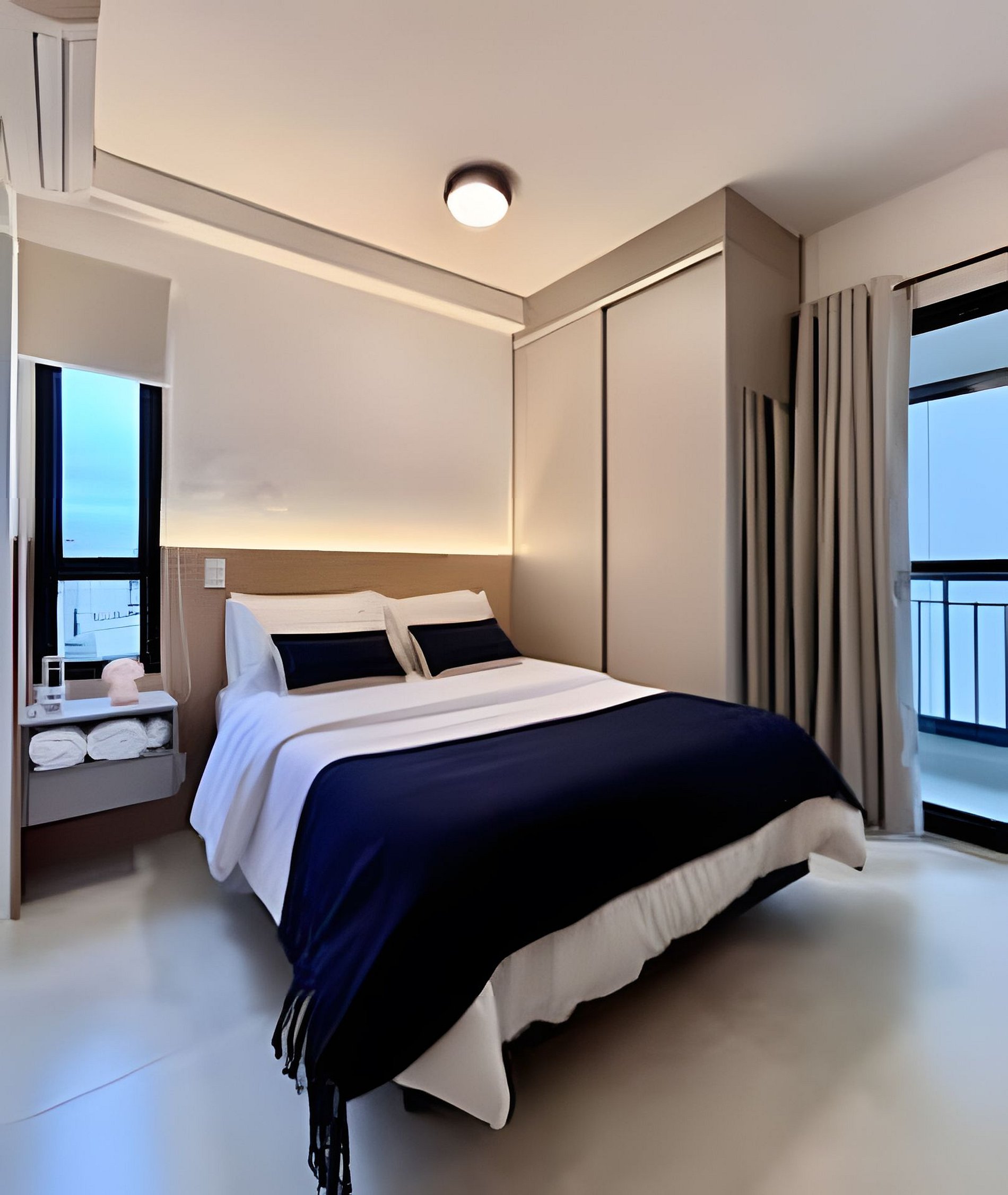 - Cama Queen-Size Premium: Roupas de cama 100% algodão, toalhas de banho de alta qualidade, garantindo conforto.