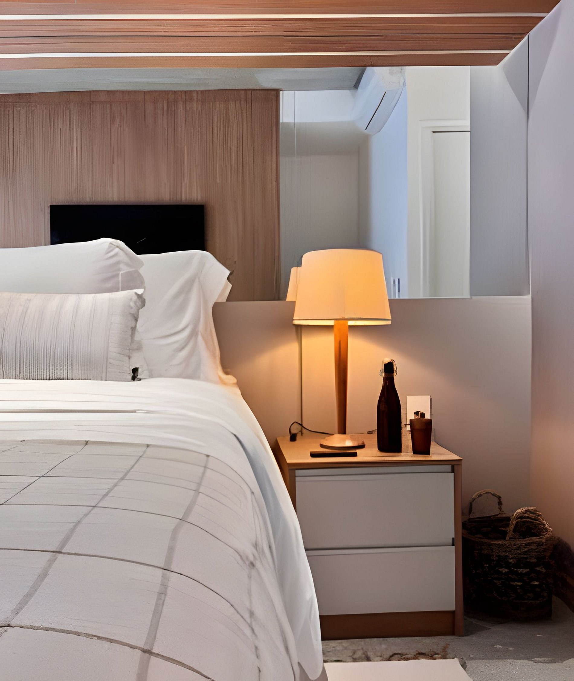 • Cama Queen com enxoval 100% algodão, 400 fios, e toalhas egípcias de alta qualidade para noites de descanso perfeitas.