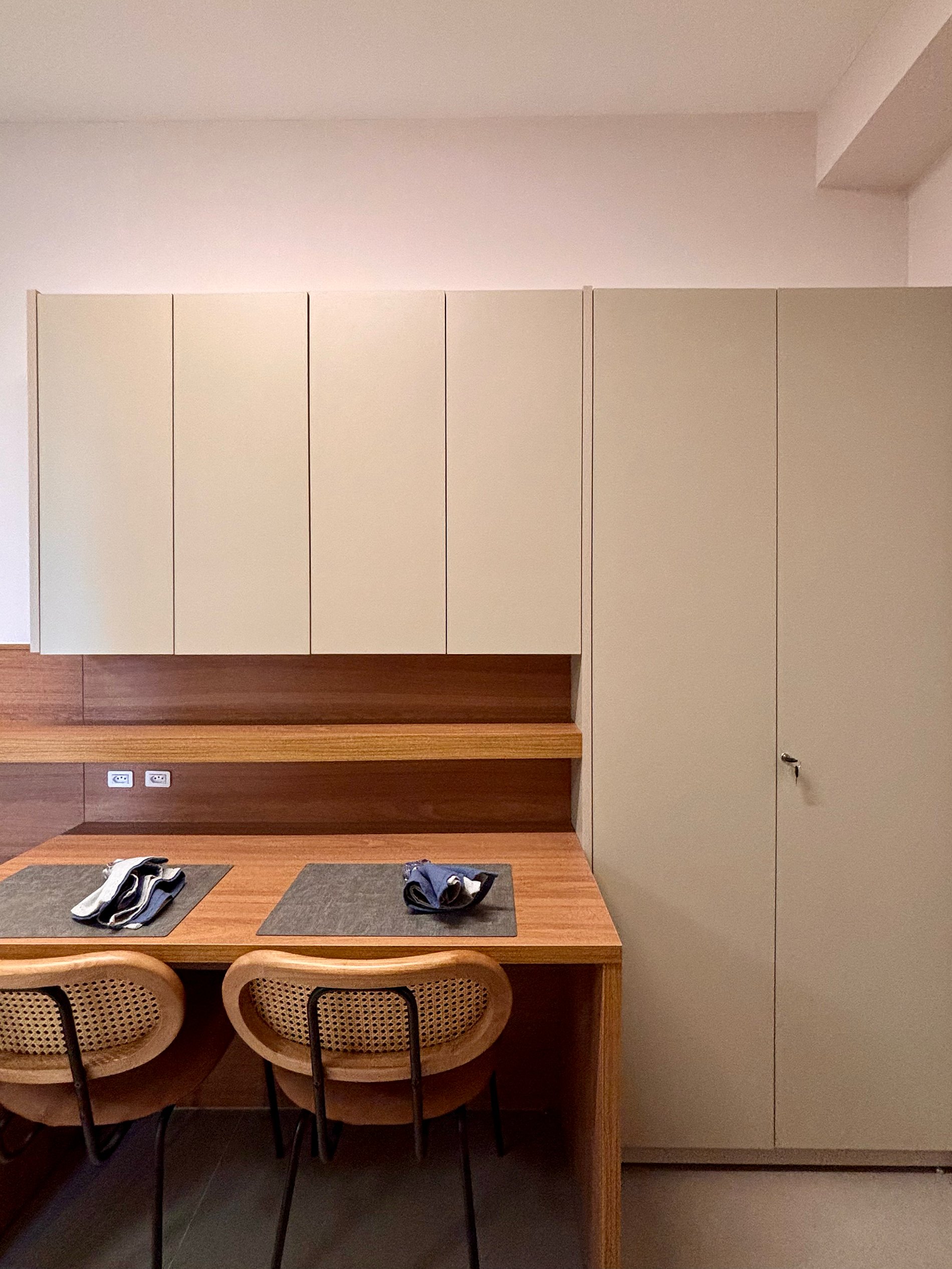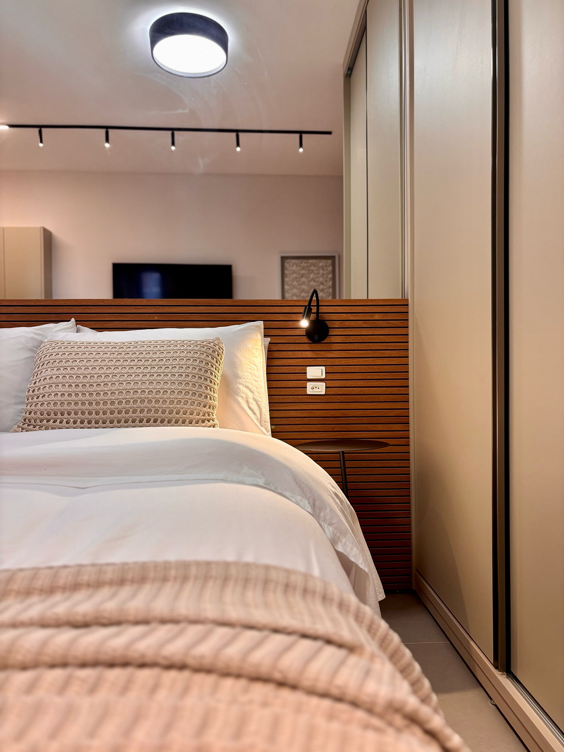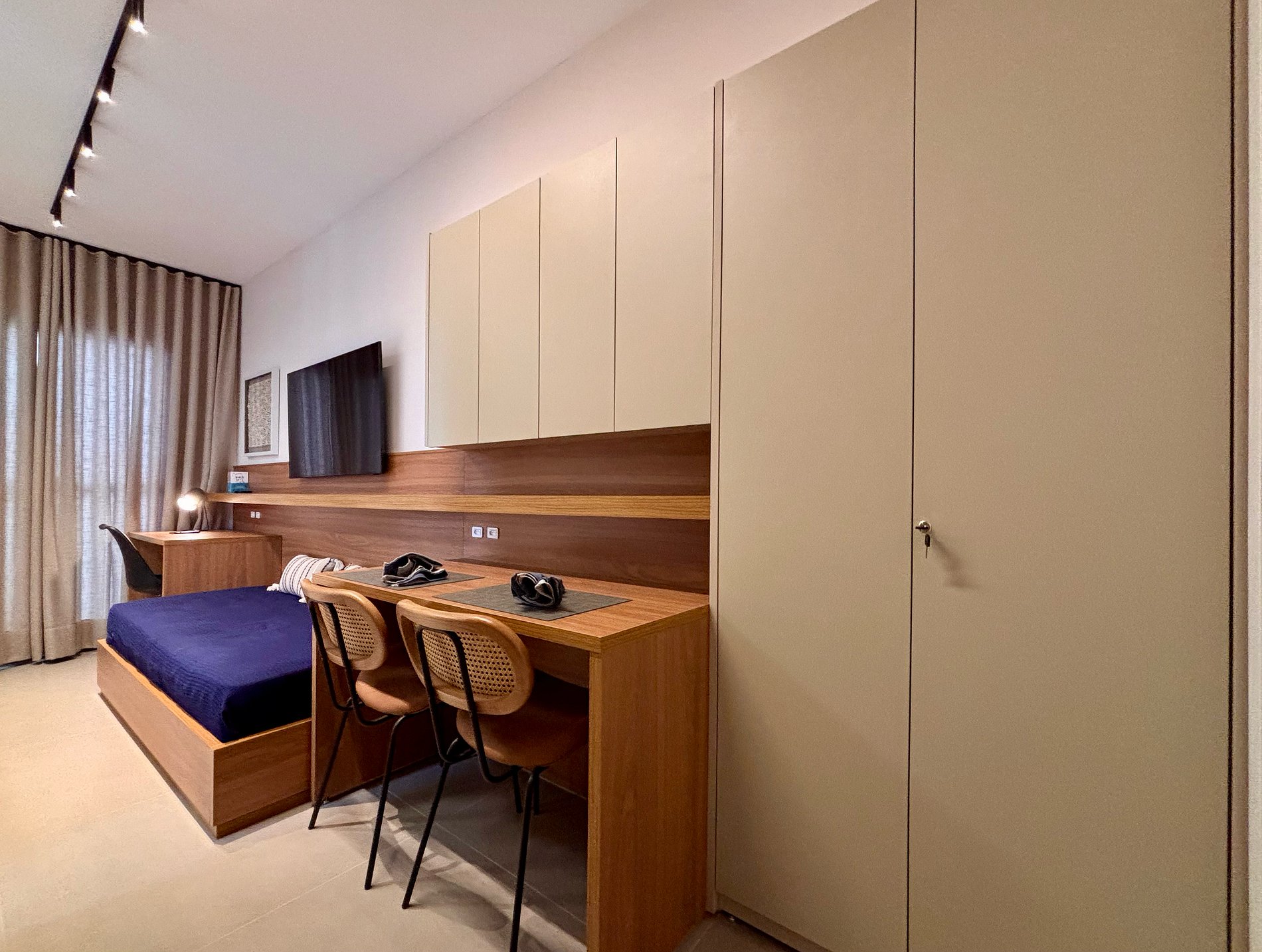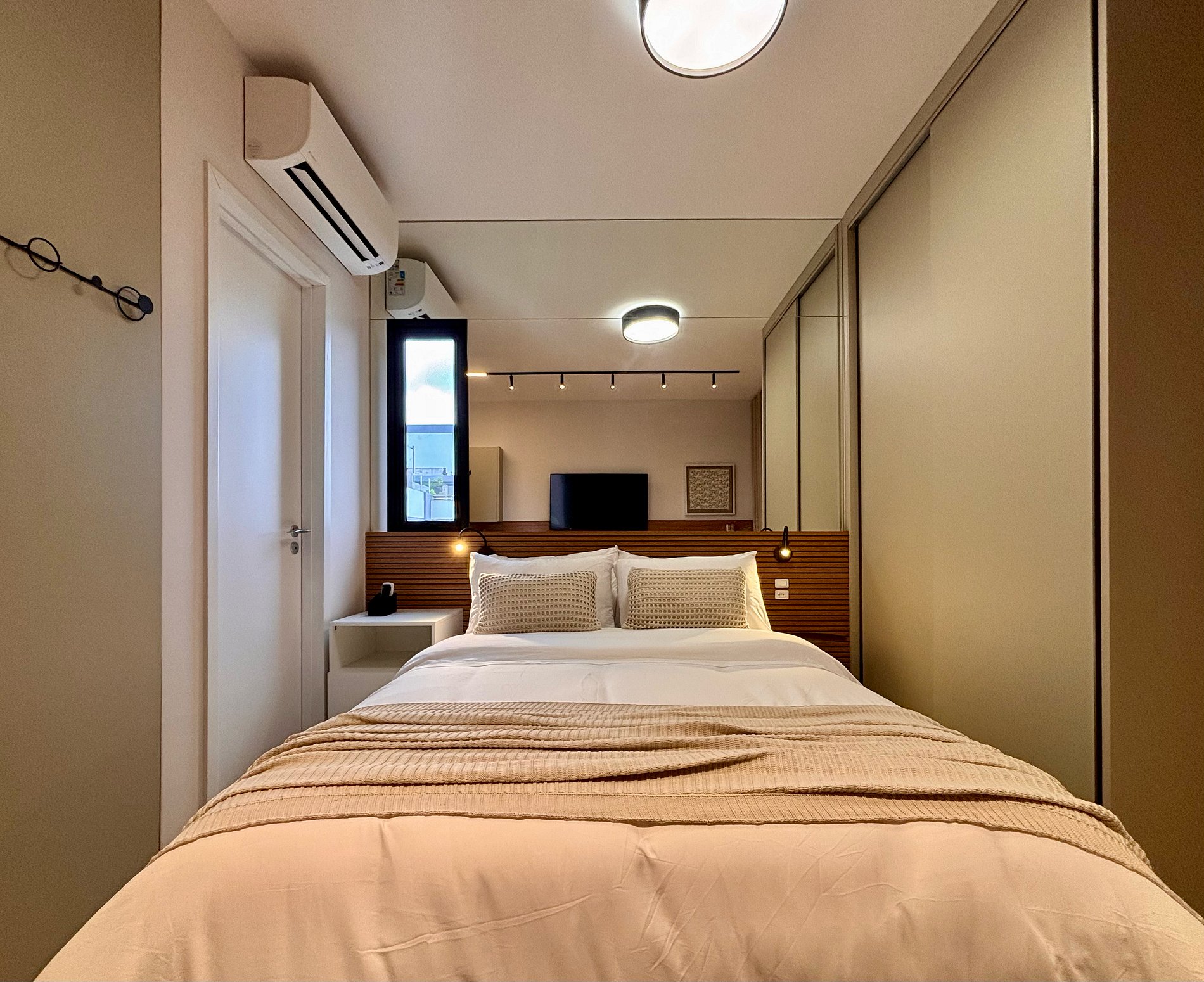 A disposição inteligente do ambiente permite circulação confortável, mantendo a praticidade para estadias curtas ou mais longas.