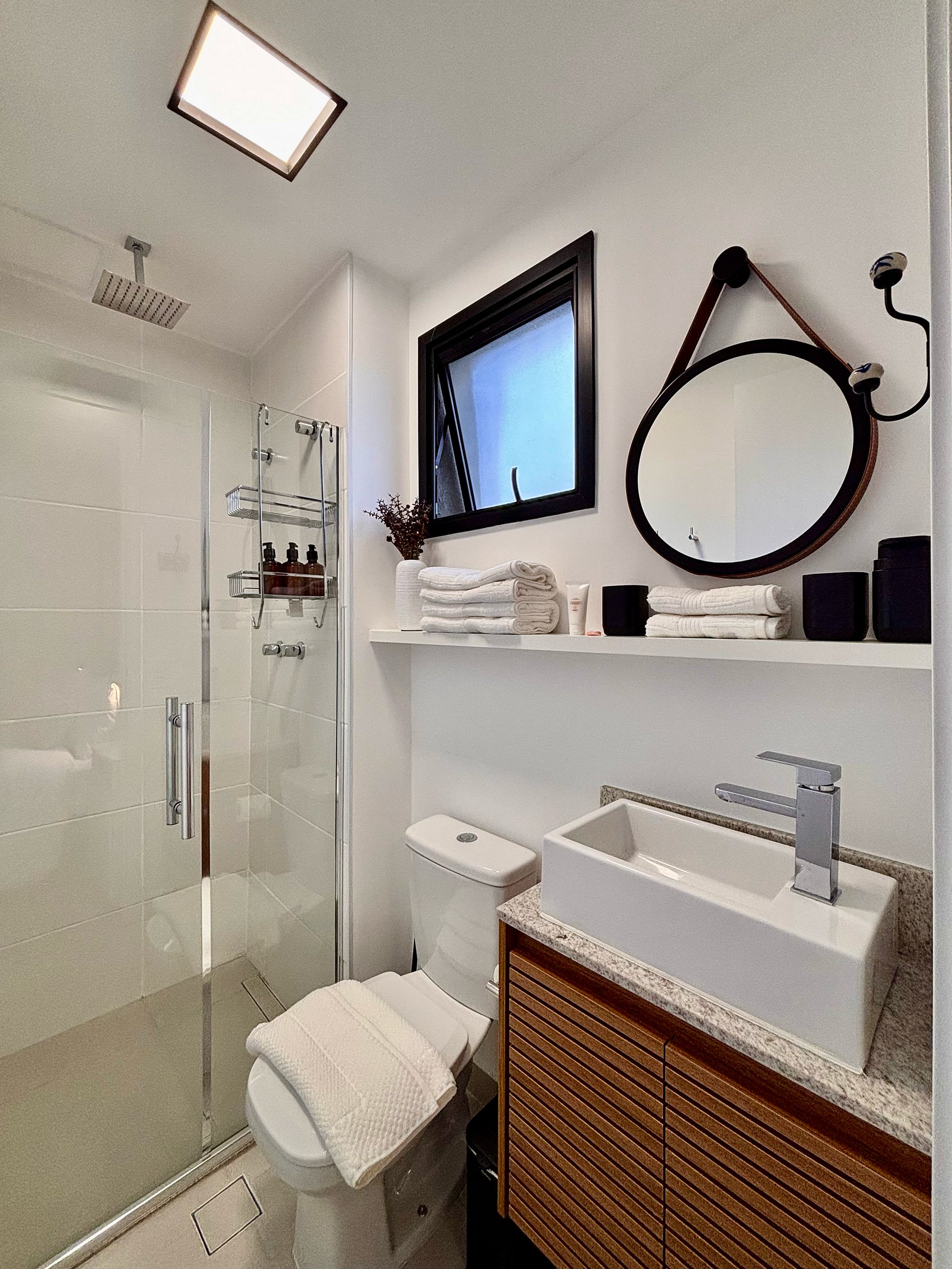 • Chuveiro com aquecimento a gás e excelente pressão
