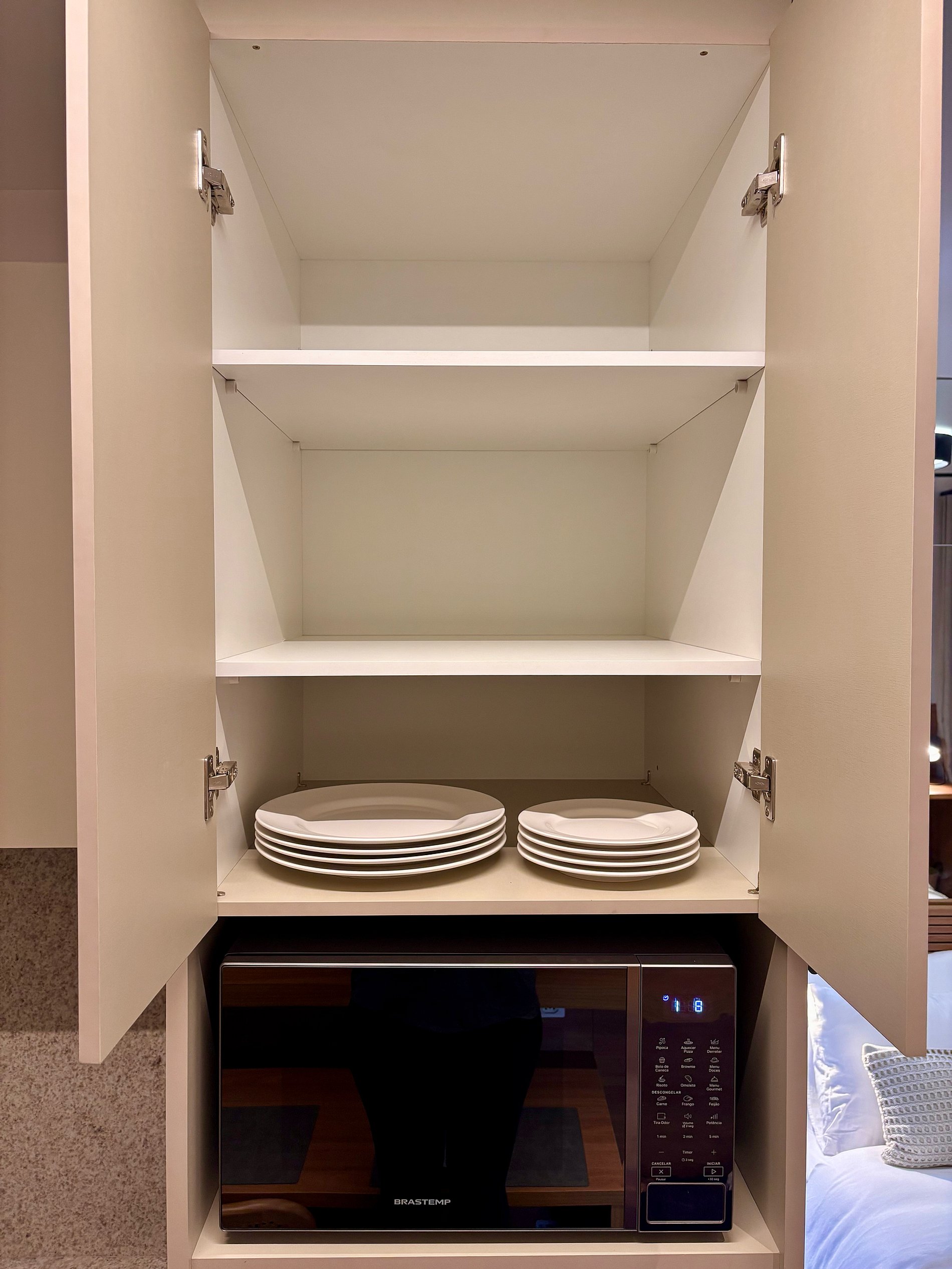 O apartamento é entregue limpo, com enxoval de cama e toalhas de alta qualidade.
