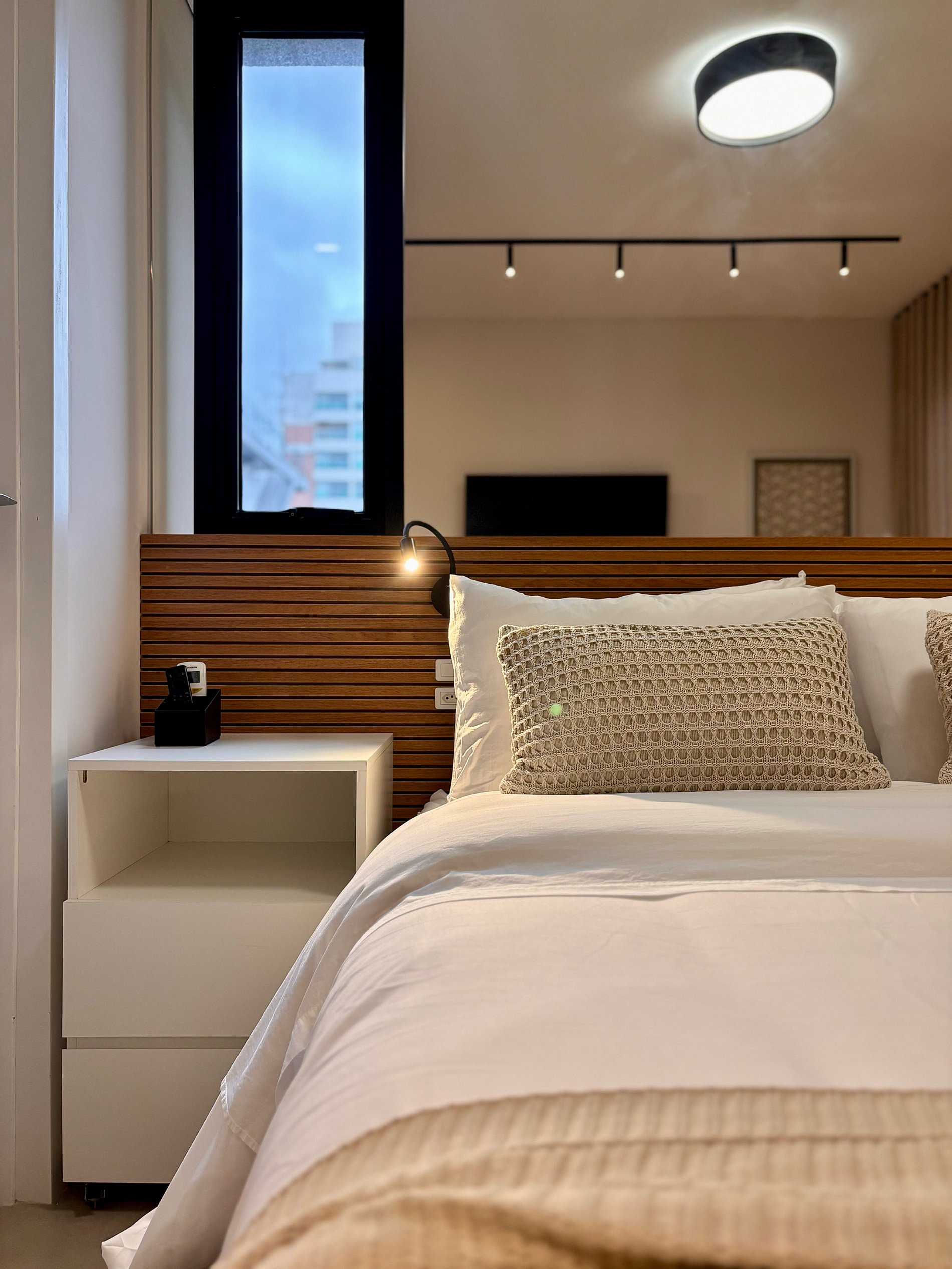 Studio moderno e bem distribuído, ideal para até 3 hóspedes. Conta com cama de casal, cama de solteiro, ar-condicionado, Wi-Fi rápido e cozinha equipada. Self check-in 24h, portaria das 7h às 19h e layout inteligente que garante conforto e funcionalidade em uma das regiões mais desejadas de São Paulo.