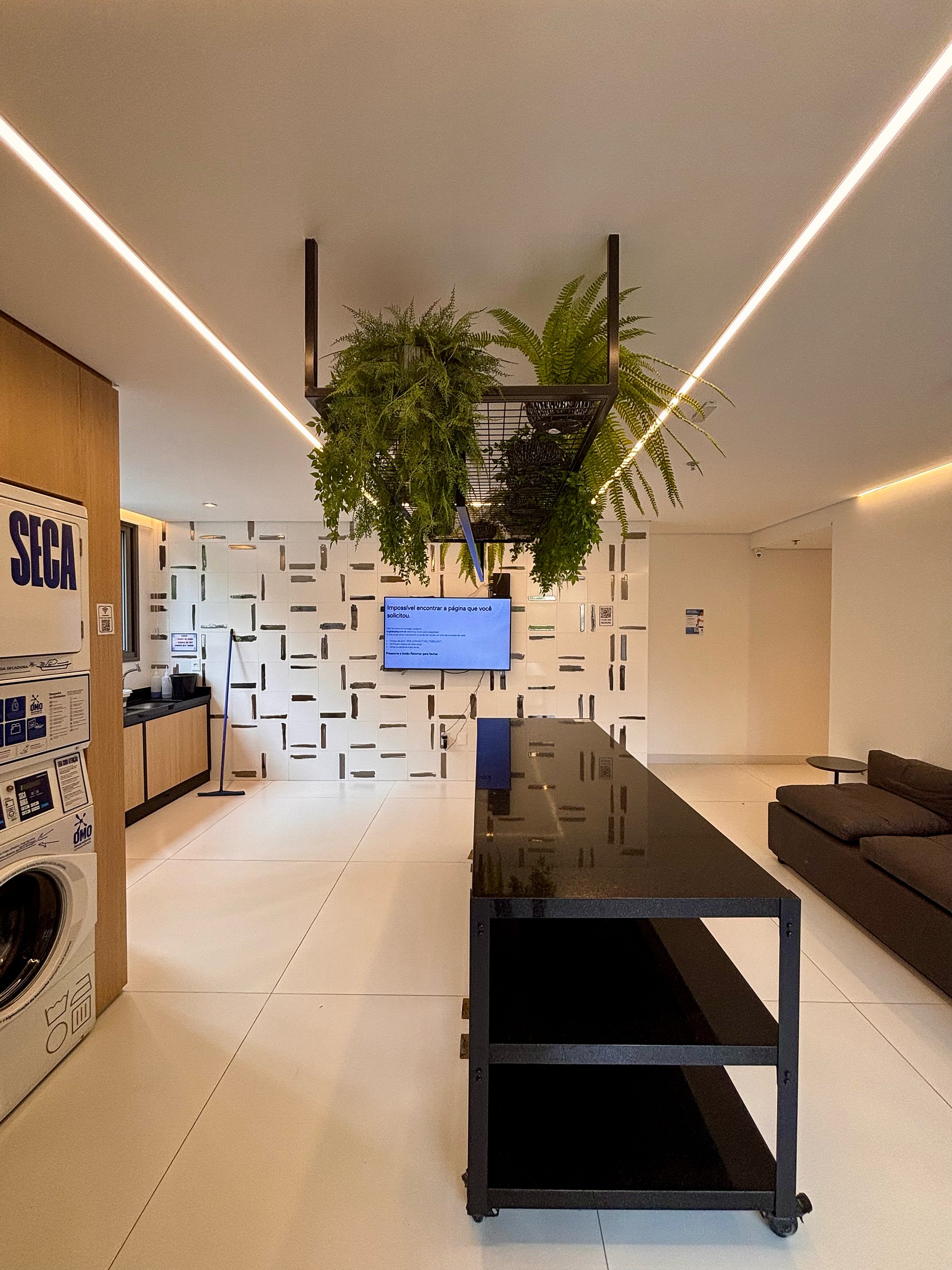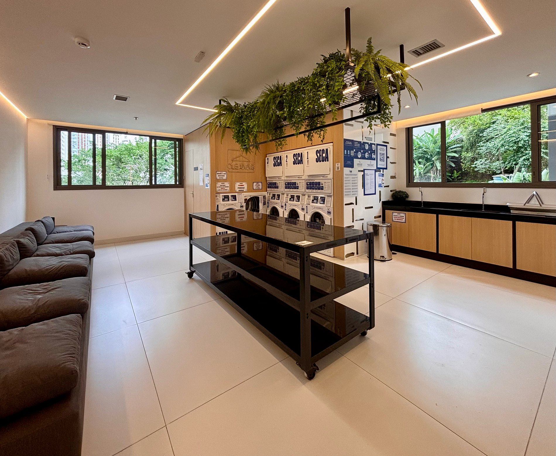 A lavanderia compartilhada está disponível nas áreas comuns mediante pagamento por uso.